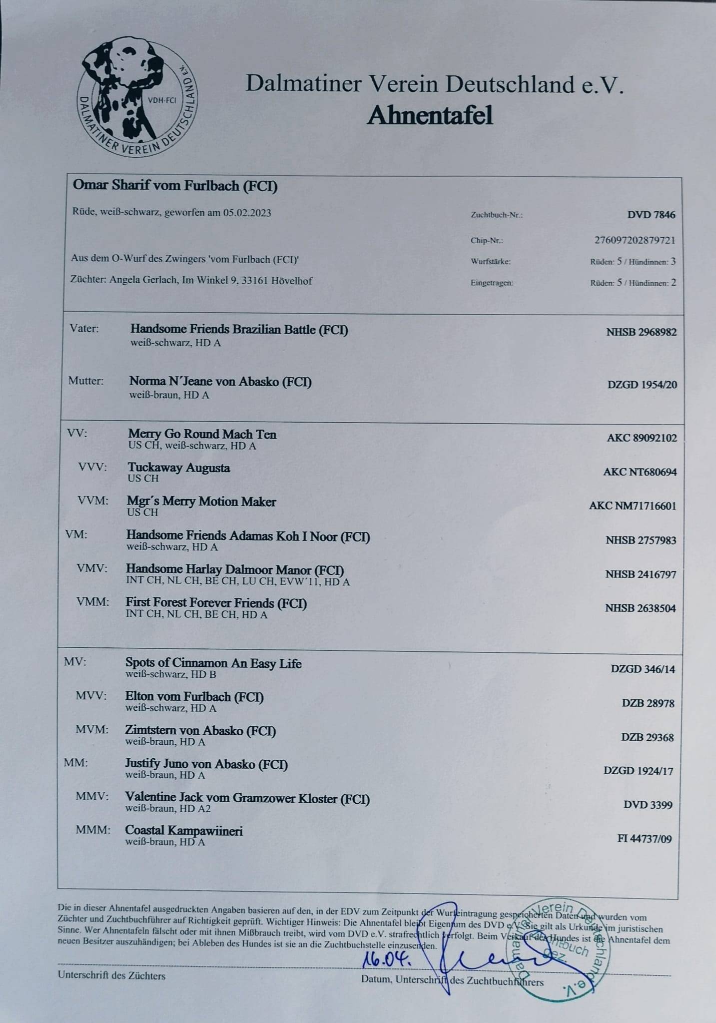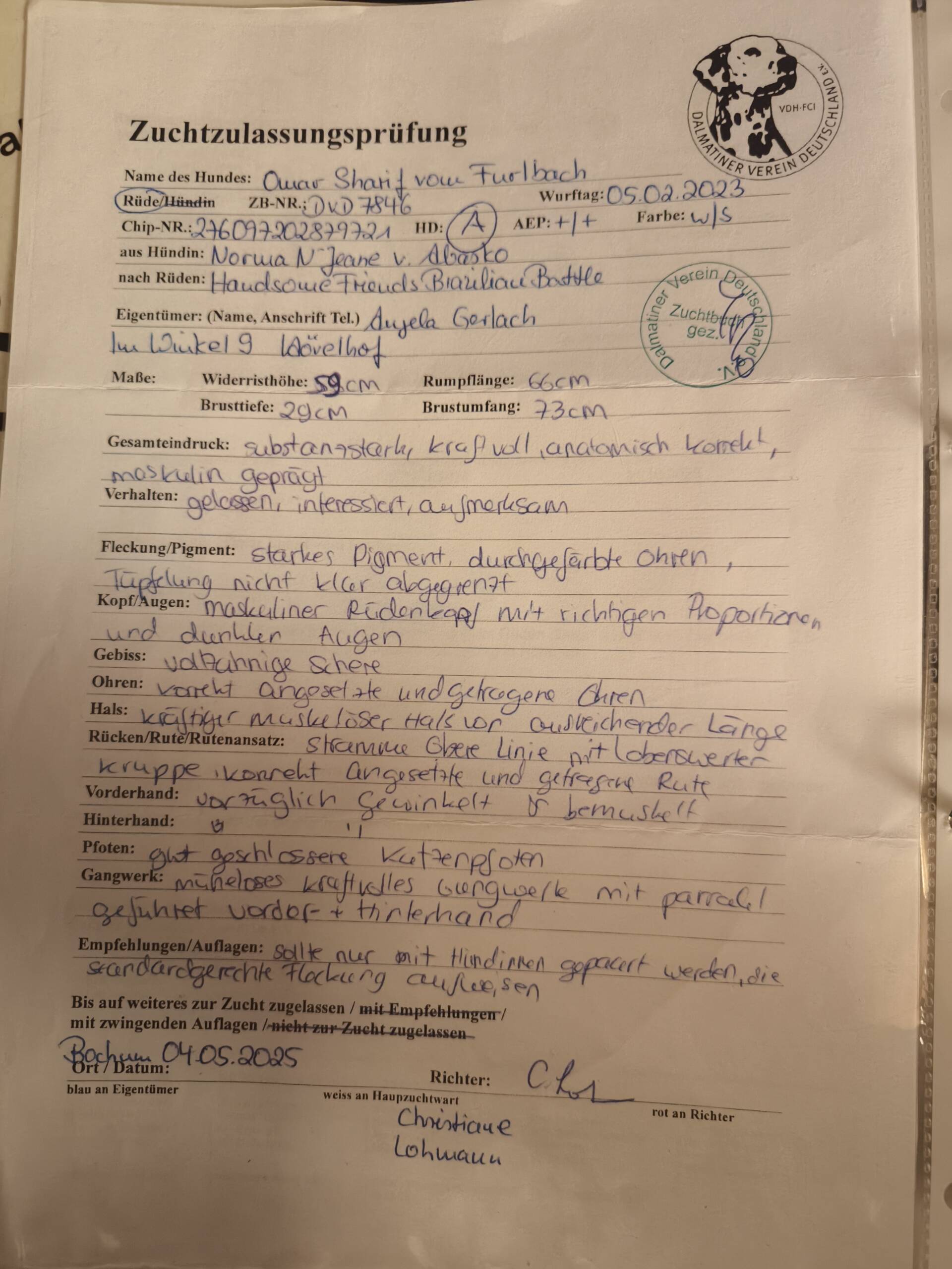 97631 Bad KönigshofenDalmundis Arpeggione (Int. Champion, Österr. Champion, Dt. Champion Club)